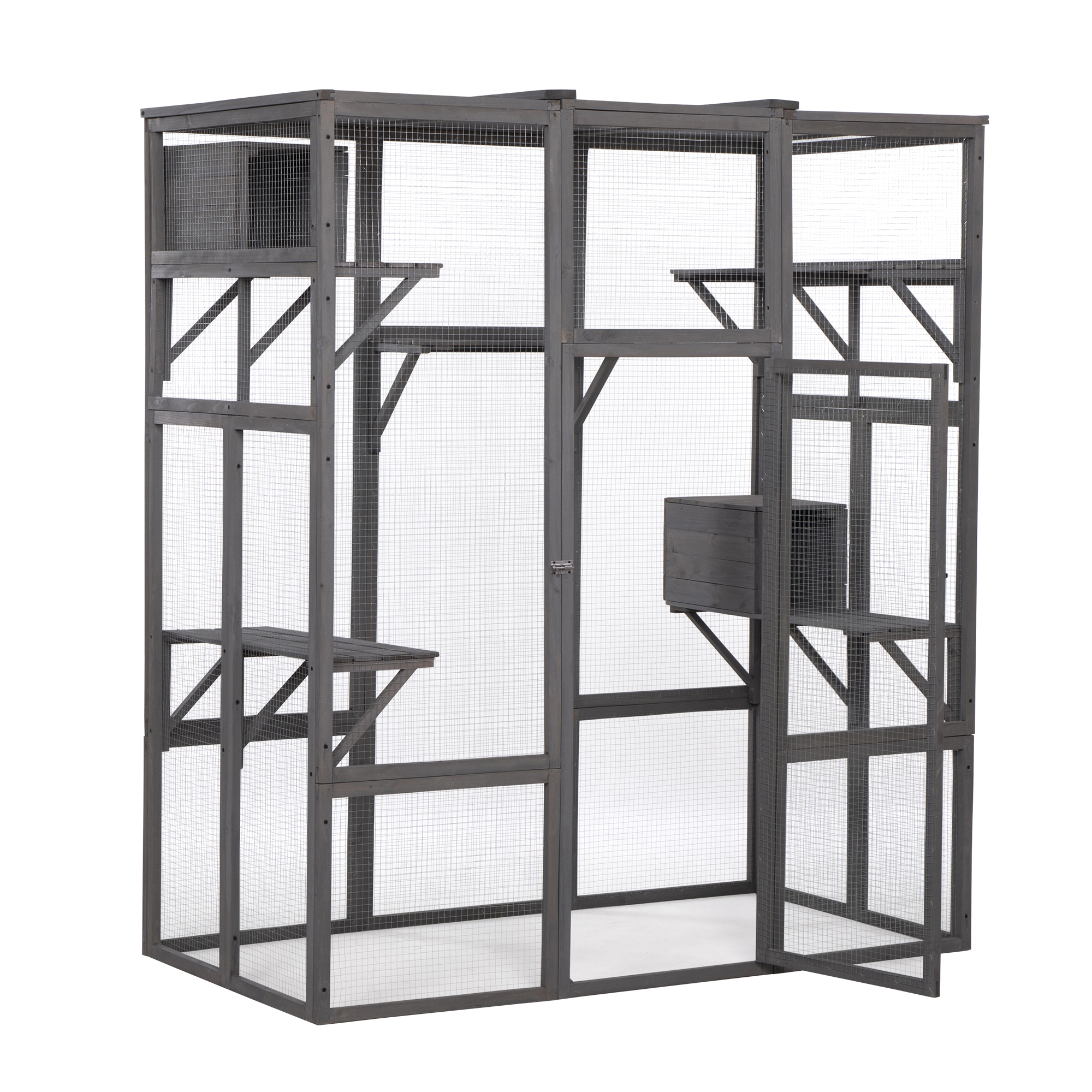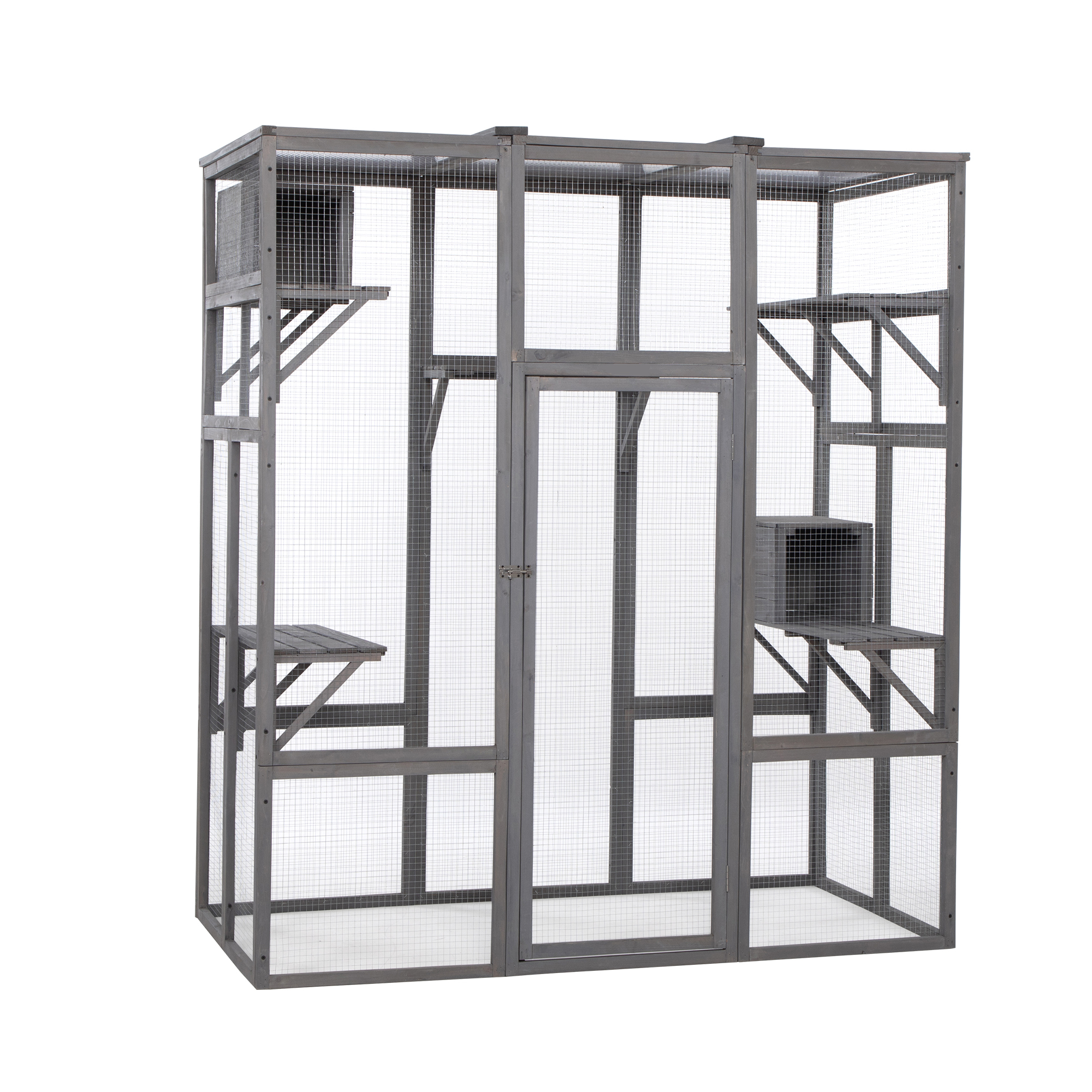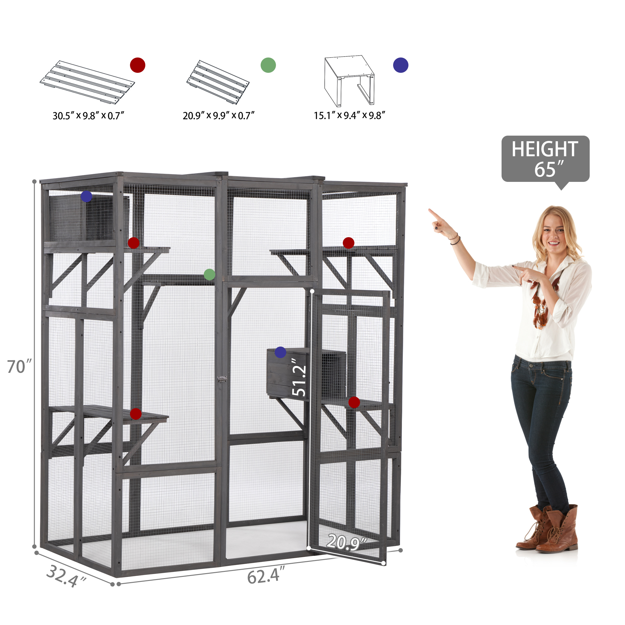 【Large for Multiple Cats】: Measured 62.41"L x 32.36"W x 70.08"H, the modern pet house provides your multiple cats and small animals with ample space to run, lounge, jump, and climb.