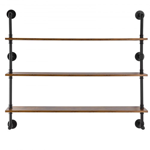 VEVOR Industrial Pipe Shelf 3 Tier 48x9.84in Wall-Mount for Kitchen BedroomRustproof and durableEasy to clean and maintainMulti-functional ToolEasy InstallationSuitable for many wall surfacesEasy to assembleSuspension rod: no,Inside width: 1120mm,Number of layers: 3,Plank length, width and thickness: 1220±5 x 250±5 x 15±2,Specification: 48 x 9.84 x 41.3in (1220 x 250 x 1050mm,±5mm),Main material : P2 density board ,Steel (galvanized),Layer height: 300mm,Color plank: vintage color Round tube: black,Item Model Number: WPSR-XM012,Load capacity per layer: 30lbs / 14kg,Item Dimensions: 48.43 x 10.04 x 42.32 in / 1230 x 255 x 1075 mm,Round tube specification: ∅25±1 x 1.2±0.1mm,Net Weight: 29.98 lbs / 13.6 kg