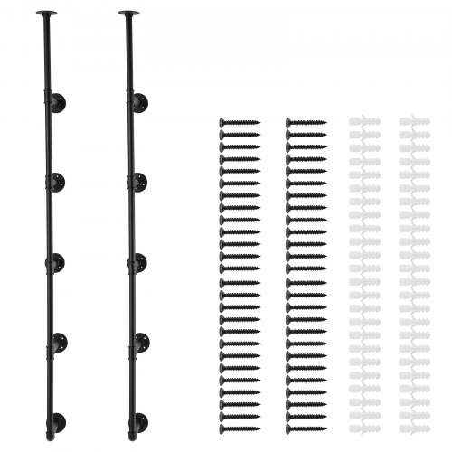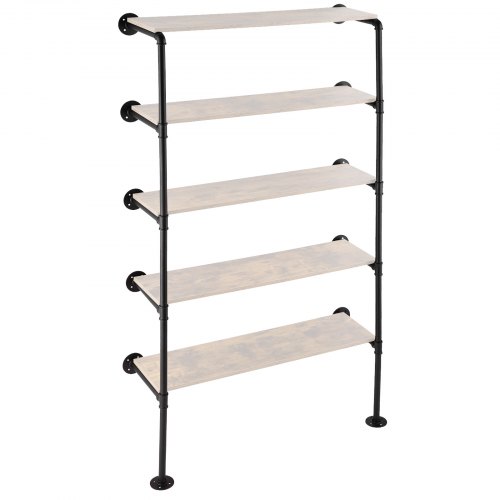 VEVOR Industrial Pipe Shelf 5 Tier 2PCS 11.8in W Wall-Mount Planks NOT IncludedRustproof and durableEasy to clean and maintainMulti-functional ToolEasy InstallationSuitable for many wall surfacesEasy to assemblePipe specification (section diameter x thickness): ∅25±1 x 1.2±0.1mm,Number of layers: 5,Color: black,Suspension bar: no,Layer height: 315mm,Item Model Number: WPSR-XM017,Load capacity per layer: 50lbs / 23kg,Specification (D x H): 11.8 x 68in (300±5 x 1730±10mm),Applicable board width: 300mm,Item Dimensions: 14.37 x 69.09 x 3.35 in / 365 x 1755 x 85 mm,Main material: Q235A Steel (galvanized),Net Weight: 15.65 lbs / 7.1 kg,Number of poles: 2