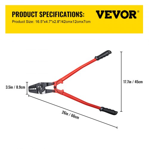 VEVOR Hand Swager Crimper 24 Inch,Swaging Tool 5 Cavity 1/16" 3/32" 1/8" 5/32" 3/16",Hand Cimping Tool for Copper Aluminum Oval Sleeves and Stop Sleeves,Wire Rope Crimping Tool Swage Tool Long HandExcellent CrimpingWire CuttingSolid StructureLabor-saving HandleCrimp in a BreezeDiverse UseType: 24 inch,Capacity: 1/16", 3/32", 1/8", 5/32" and 3/16" sleeves,Gross weight: 7 LBS,Package size: 66x15x4cm/26x7x2inch,Material: Alloy steel
