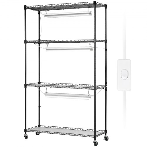 VEVOR Plant Stand with Grow Light, 4 Tier Plant Shelf with 90W Grow Light for Indoor Plants, 3 Modes Grow Light Shelf Full Spectrum Lights Adjustable Metal Plant Stand for Seed StartingPlant Grow ShelfGrow LightGrow Light ParametersConvenient & Secure DesignEasy InstallationSecure FeaturesPrimary Material: Iron Q235 Paint,Number of Grow Lights: 3,Weight Capacity: 240 lbs,Single Light Power: 30W,Color: Black,Total Power: 90W±8%,Item Model Number: 4C15090-2020T06P3-US,Product Weight: 28.37 lbs / 12.85 kg,Product Dimensions: 35.43 x 13.78 x 59 in / 900 x 350 x 1500mm