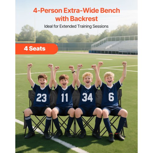 VEVOR Folding Chair Sports 4 Seat Sideline Team Bench with Sidebag & Carry Bag