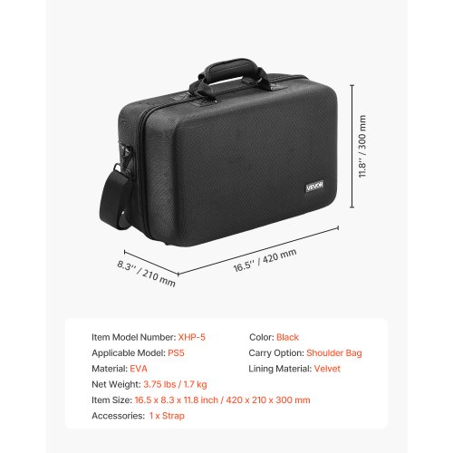 PS5 Carrying Case Travel Bag for Playstation 5 Shockproof EVA Soft LiningEnhanced ProtectionScratch-Resistant MaterialTailored Fit for Your DeviceMultiple UsageConvenient Carrying OptionsLightweight and PortableCarry Option: Shoulder Bag,Applicable Model: PS5,Item Size: 16.5 x 8.3 x 11.8 inch / 420 x 210 x 300 mm,Color: Black,Lining Material: Velvet,Item Model Number: XHP-5,Material: EVA,Net Weight: 3.75 lbs / 1.7 kg