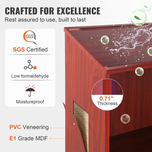 VEVOR Podium Stand, 47 inch Hostess Stand with 4 Rolling Wheels, Wood Podium with Storage Shelves and Slant Desktop, Lecterns & Podiums for Home, Office, School, Church, BrownPremium Professional PodiumBuilt to LastFour Smooth CastersUser-friendly Desktop DesignAdjustable Storage ShelfVarious ApplicationUniversal Casters: Four, two with brake,Product Weight: 54 lbs/24.5Kg,Top Plate Size: 23.62x14.57x0.71 in/600x370x18 mm,Material: E1 Grade MDF,Certification: SGS Certified,Product Size: 23.62x14.17x47.24 in/600x360x1200 mm,Surface: PVC Veneering