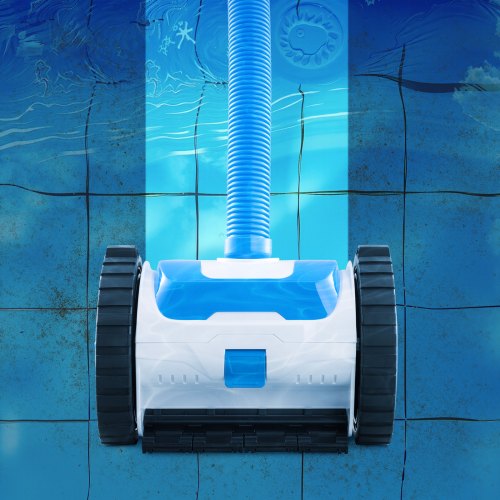 VEVOR Suction Pool Cleaner, Automatic Pool Vacuum Cleaner, Suction Side Automatic Pool Cleaner, Suction Vacuum Pool Sweeper with 2 Wheels, for In-ground Pool and Above-Ground Pool Up to 20 x 40 ftMovable SkirtLarge Rubber TiresSuction Regulating ValveHigh-Quality HoseSuitable for Various PoolsQuick AssemblyApplicable Pool Type: In-ground Pool / Above-ground Pool,Item Model Number: R5,Hose Size: 39.4 x Φ1.8 in / 1000 x Φ46 mm,Product Dimensions: 11.8 x 7.9 x 7.9 in / 300 x 200 x 200 mm,Net Weight: 13.7 lbs / 6.2 kg,Applicable Pool Materials: Shotcrete / Tile / Vinyl / Fiberglass,Pool Pump Power: ≥ 1100W
