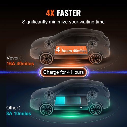 VEVOR Level 1+2 Portable EV Charger, 16 Amp 120V or 240V, Electric Vehicle Charger with 28-Foot Charging Cable NEMA 6-20P Plug NEMA 5-15 Adapter, Plug-in Home EV Charging Station for SAE J1772 EVs100% Copper Wire TPE CableStrong Weather ResistanceComprehensive ProtectionEasy to UseUniversal CompatibilityAdjustable CurrentConnector: Universal SAE J1772,Waterproof Rating: IP66,Maximum Power: 3.8 kW,Plug Type: NEMA 5-15P(Level 1)/NEMA 6-20P(Level 2),Maximum Current: 16A,Item Model Number: EV-B06-US003A,Input Voltage: AC 120V; 60 Hz (Level 1) / AC 240V; 60 Hz (Level 2),Cable Length: 28 ft / 8.6 m,Net Weight: 7 lbs / 3.2 kg