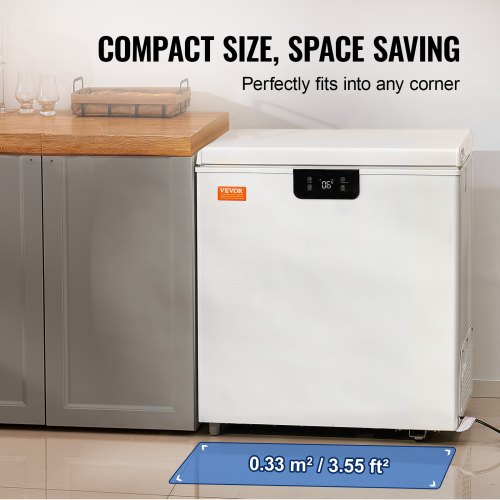VEVOR Chest Freezer, 3.88 Cu.ft / 110 L Compact Deep Freezer, Free Standing Top Open Door Compact Freezers with 2 Removable Baskets & Adjustable Thermostat, Energy Saving & Low Noise, WhiteWide Temperature AdjustmentIntuitive Digital Display ScreenEven Cooling Effect, Rapid Heat DissipationCompact & StylishVast Capacity, Storage BlissLow-Energy ConsumptionNoise Level: 38 dB,Main Materials: Shell: PCM ; Inner Tank: Aluminum Plate ; Door Frame: ABS/PS,Capacity: 3.88 cu.ft / 110 L,Cooling Method: Direct Cooling,Item Model Number: BD/BC-110EC,Rated Power: 74W,Net Weight: 41.7 lbs / 18.9 kg,Freezer Adjustable Temperature Range: -18.4 - 50℉ / -28 - 10 ℃