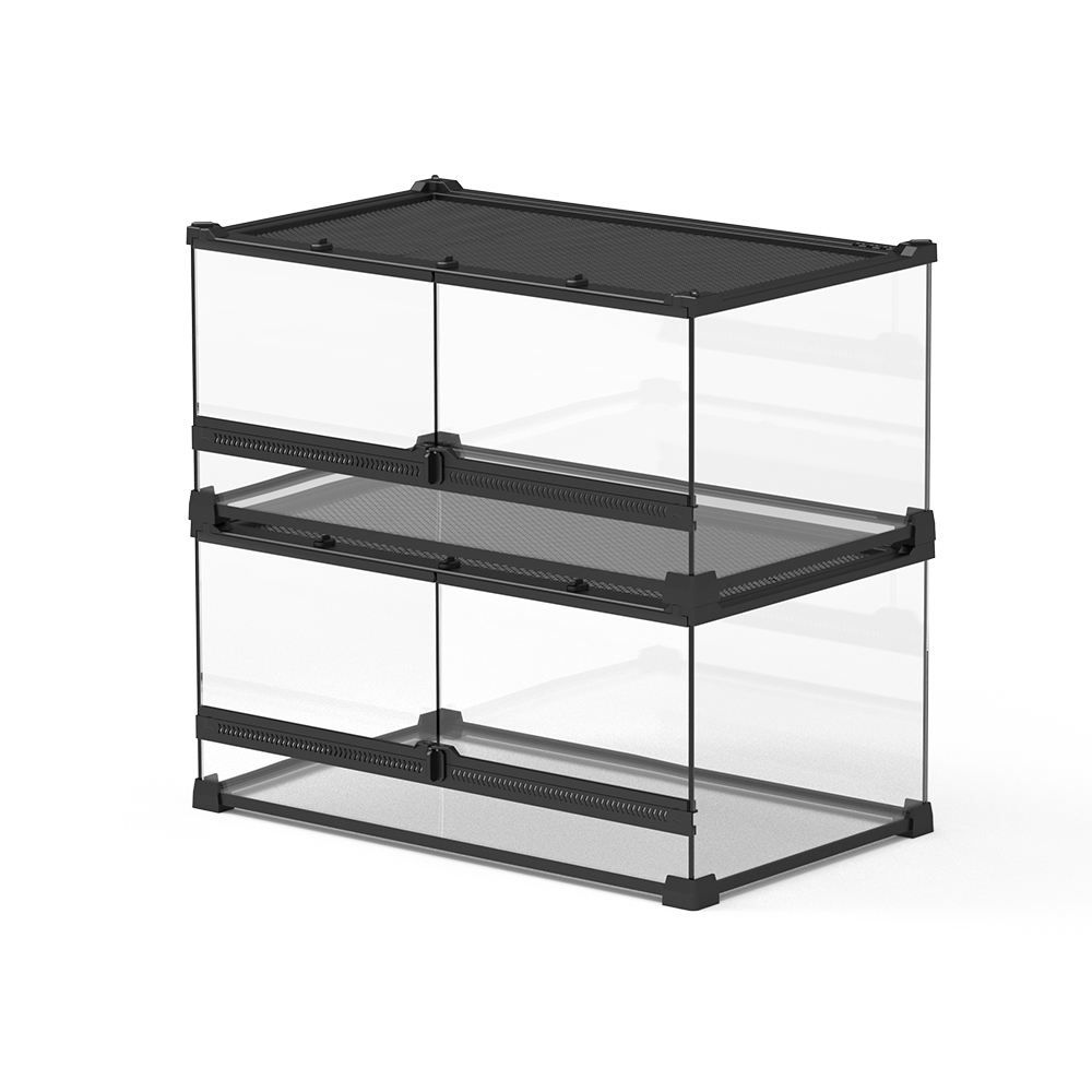 Out of the Box Made out of full tempered glass which is ready to use. Anti Escape Equipped with a reliable locking system that keeps animals inside and cannot be pushed open by your curious pet. Stackable for Reptile Room Unique mortise and tenon joints design make sure that you could stack one box on top of another with great stability at the same time. Desert and Rainforest The heat lamp and substrate heaters can easily set on metal mesh or under raised bottom frame