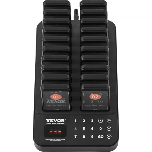 VEVOR Restaurant Pager System, Wireless 400m Long Range Lineup Waiting Queue Signal, Guest Customer Calling Beepers with Vibration & Flashing, 20 Buzzers for Food Truck, Church, Nursery, HospitalOutstanding PerformanceLong Usage TimeUser-Friendly SettingsWide CoverageTurn On/OffMulti-Scene ApplicationBattery Capacity: Lithium Polymer 250mAh,Number of Sub-units: 20, Rectangular,Color: Black,Item Model Number: P30,Product Weight: 0.6 lbs / 1.39 kg,Base Dimensions: 10.7x6.1x1.2 inches / 273x154x30 mm,Sub-unit Dimensions: 4x2x0.5 inches / 102x52x12 mm