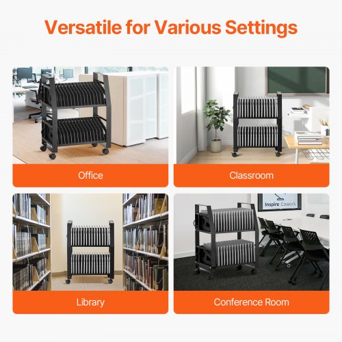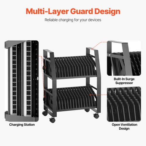 VEVOR Laptop Cart, 32 Device Mobile Open Charging Station, Up to 15.6 in Screen Size, Office and Classroom Mobile Charging Cart, for Chromebook, Tablet and LaptopEfficient Charging SolutionLarge Size CompatibilityDurable and Long-LastingReliable Charging PerformanceEasy Mobility with WheelsIdeal for Various SettingsCompartments Thickness: 0.98 in / 25 mm,Item Model Number: SOC-32P,Charging Slots: 32 Slots,Compartments Height: 7.09 in / 180 mm,Product Weight: 37.99 lbs / 17.3 kg,Cabinet Thickness: Frame: 3.2 mm; Panel: 0.8 mm,Max Device Size: 15.6 in / 396 mm,Compartments Depth: 10.24 in / 260 mm,Main Material: Cabinet: Cold-Rolled Steel; Shelf: ABS,Product Size: 27.00 x 14.76 x 30.12 in / 685 x 375 x 765 mm