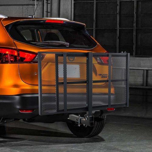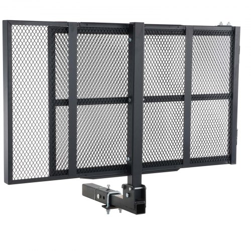 VEVOR Hitch Mount Cargo Carrier, 45.3" x 25.6" Iron Hitch Cargo Rack with Folding Ramp, Hitch Rack Basket with Stabilizer and Straps, 500LBS Mobility Scooter Carrier Fit 2" Hitch ReceiverElevate Your MobilityBuilt for Security on the GoEffortless Loading and StorageUnrivaled DurabilityCompatible with Your JourneyHigh ConvenienceRamp Dimensions: 38.6" x 25.9" x1.9" / 980 x 658 x 48 mm,Hitch Size: 2" x 2" / 50 x 50 mm,Item Model Number: XSJ23-F08,Maximum Load Capacity: 500 lbs / 226.8 kg,Product Weight: 61.3 lbs / 27.8 kg,Material: Iron,Wall Thickness: 4.0 mm,Cargo Basket Dimensions: 46.3" x 26.8" x 4.4" / 1175 x 680 x 112 mm