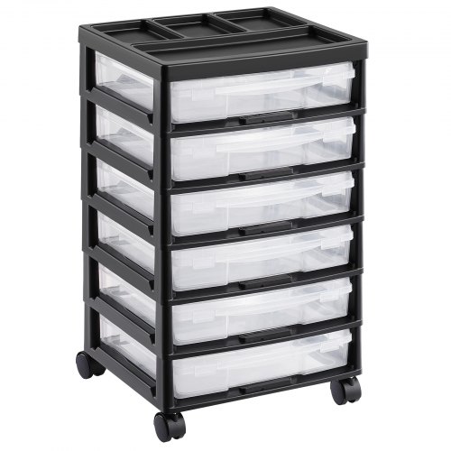 Scrapbook Rolling Storage Cart 6-Tier Large Capacity with 6 Clear Cases Black