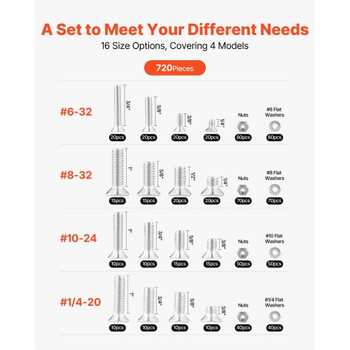 720 Pcs Bolts Nuts Assortment Kit Imperial Stainless Steel for FurnitureComprehensive SetMultiple SpecificationsSuperior Durability and ReliabilityQuick Part IdentificationWide ApplicationAdjustable Storage Box DividersItem Dimensions (LxWxH): 7.87x5.51x1.54 inch / 200x140x39 mm,Color: Stainless Steel Natural Color,Item Model Number: 720 UNCUNF SS304,Total Number of Parts: 720 Pieces,Material Type: Stainless Steel,Mechanical Performance Grade: A2-50,Main Material: Stainless Steel (SUS304),Item Weight: 2.73 lbs / 1.24 kg,Part Type: Imperial