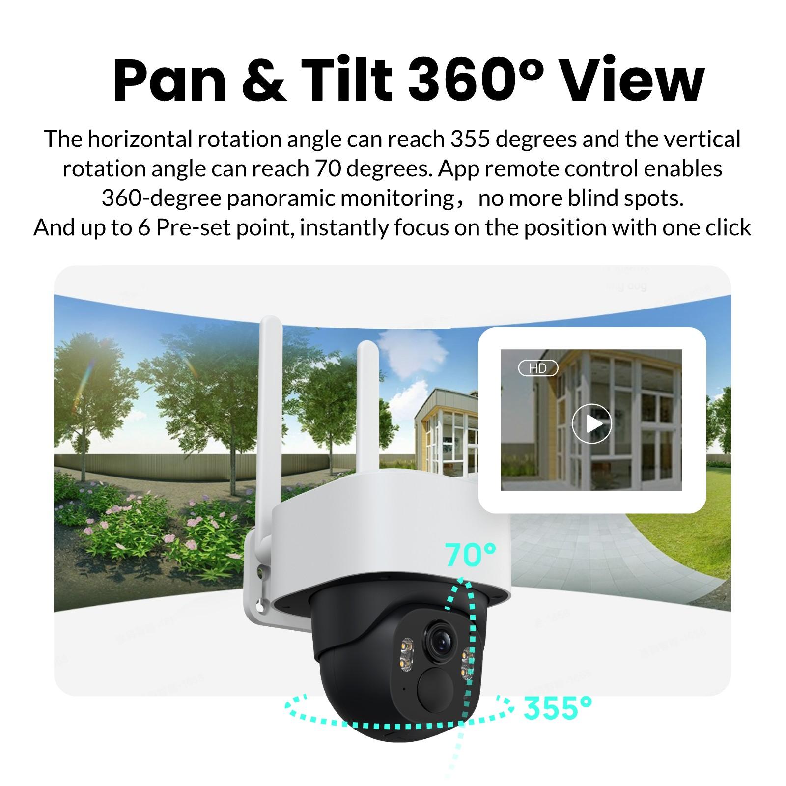 Pan-Tilt function for 360°panoramic monitoring, no more blind spots;