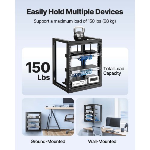 VEVOR 12U Wall Mount Server Rack Open Frame Network Rack 150 lbs 180 Degrees<br/>Solid Carbon Steel<br/>180 Degrees Door Panel<br/>Clear Measuring Marks<br/>Effortless Equipment Mounting<br/>Easy Installation<br/>Versatile Use<br/>Max Weight Capacity: 150 lbs/68.04 kg,Item Model Number: SPT-505-12,Standard Mounting Width: 20.5 in/520 mm,Height: 12U,Material: Q235,Depth: 18 in/455 mm