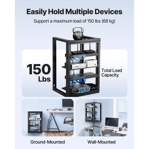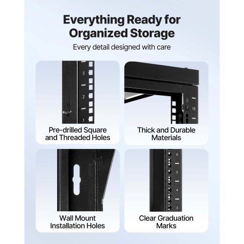 VEVOR 15U Wall Mount Server Rack Open Frame Network Rack 150 lbs 180 Degrees<br/>Solid Carbon Steel<br/>180 Degrees Door Panel<br/>Clear Measuring Marks<br/>Effortless Equipment Mounting<br/>Easy Installation<br/>Versatile Use<br/>Max Weight Capacity: 150 lbs/68.04 kg,Item Model Number: SPT-505-15,Standard Mounting Width: 20.5 in/520 mm,Height: 15U,Material: Q235,Depth: 18 in/455 mm