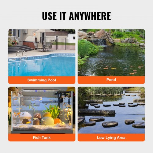 VEVOR Utility Pump, 1/3 HP, 2450 GPH High Flow, 30 ft Head, Sump Pump Submersible Water Pump Portable Utility Pump with 10 ft Long Power Cord for Draining Water from Swimming Pool Garden Pond BasementEfficient DrainageQuality You Can TrustEasy CompatibilityUser-Friendly DesignVersatile ApplicationIPX8 Waterproof PerformanceMax Power: ≥1/3 HP (≥250W),Waterproof Rating: IPX8,Item Model Number: ZX30056,Product Weight: 7.72 lbs/3.5 kg,Max Flow: 2450 GPH (247 L/H),Discharge Size: NPT 1-1/4",Max Head: 30 ft/9.1 m,Product Size: 5.98 x 5.35x 8.66 in/ 152 x 136 x 220 mm
