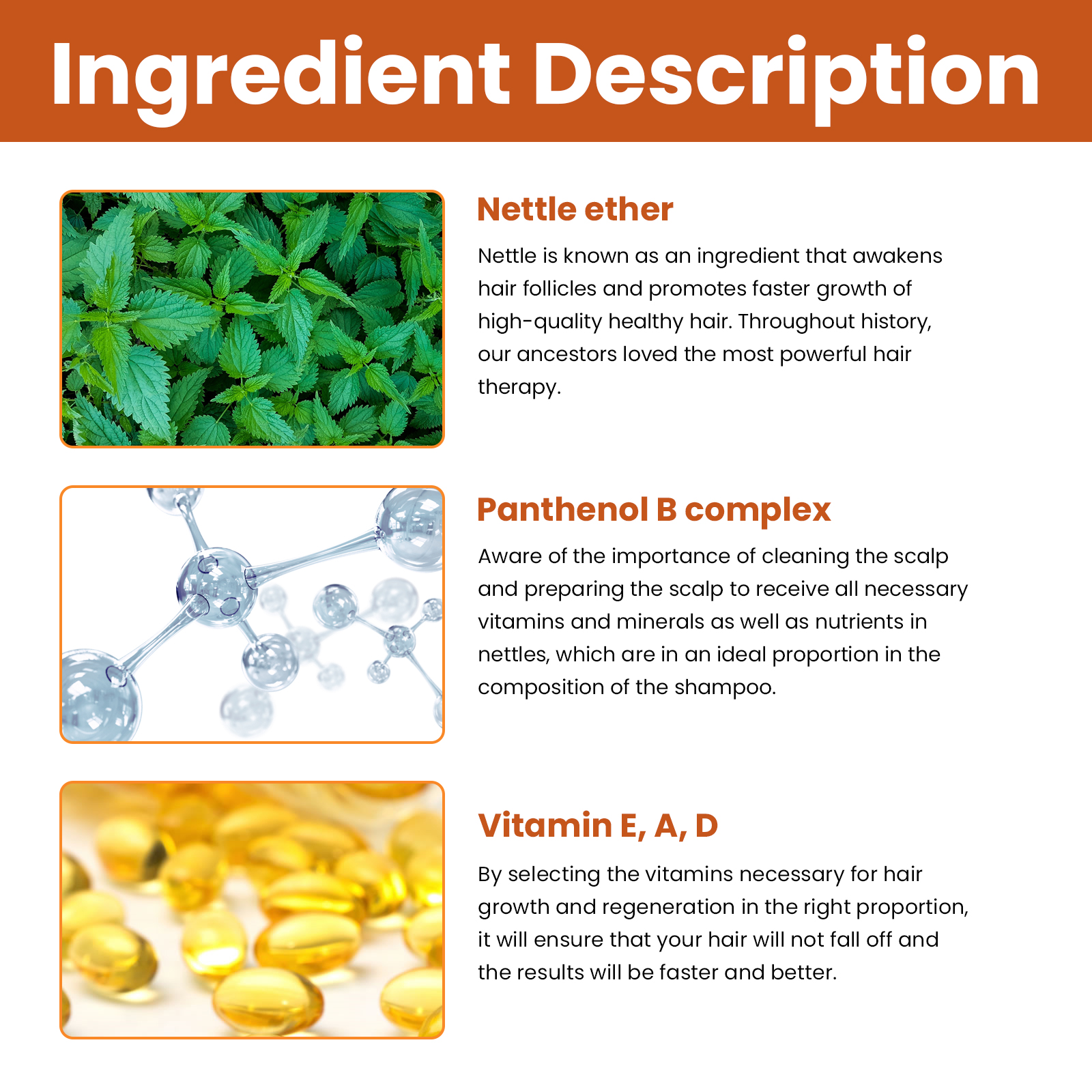 Our hair loss prevention shampoo contains urticaria ether, panthenol B complex, which promotes hair recovery, faster growth, regeneration and prevents hair loss. Its use method is very simple: wet the hair with warm water, take the right amount of shampoo and rub, apply the shampoo to the hair, gently scrub from the scalp to both ends, the hair is shiny, the hair is naturally soft. And can be applied to all hair and scalp, due to its powerful natural active ingredients, it does not cause irritation and produces good results quickly.