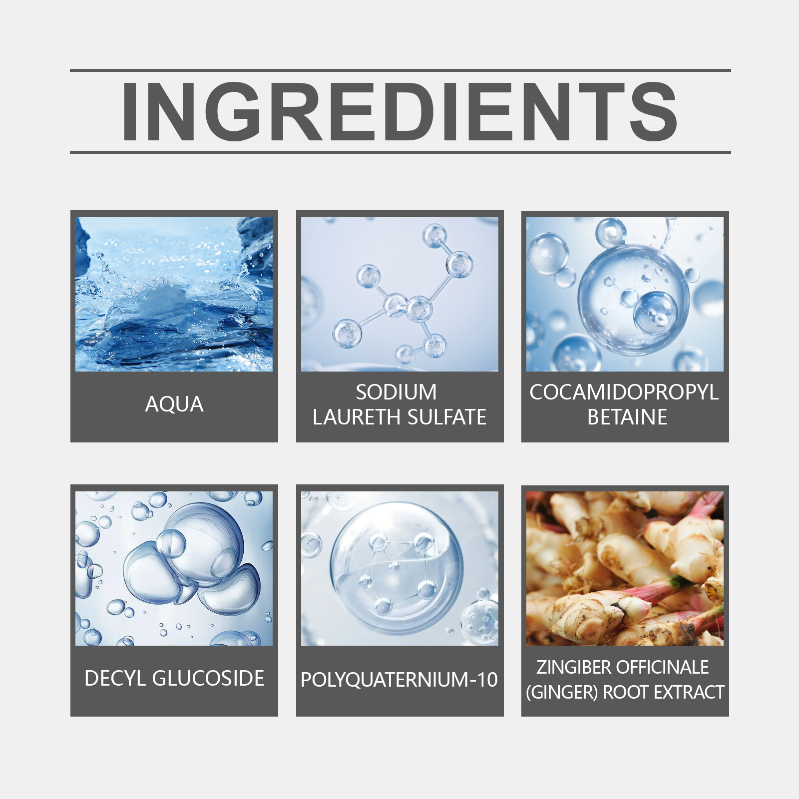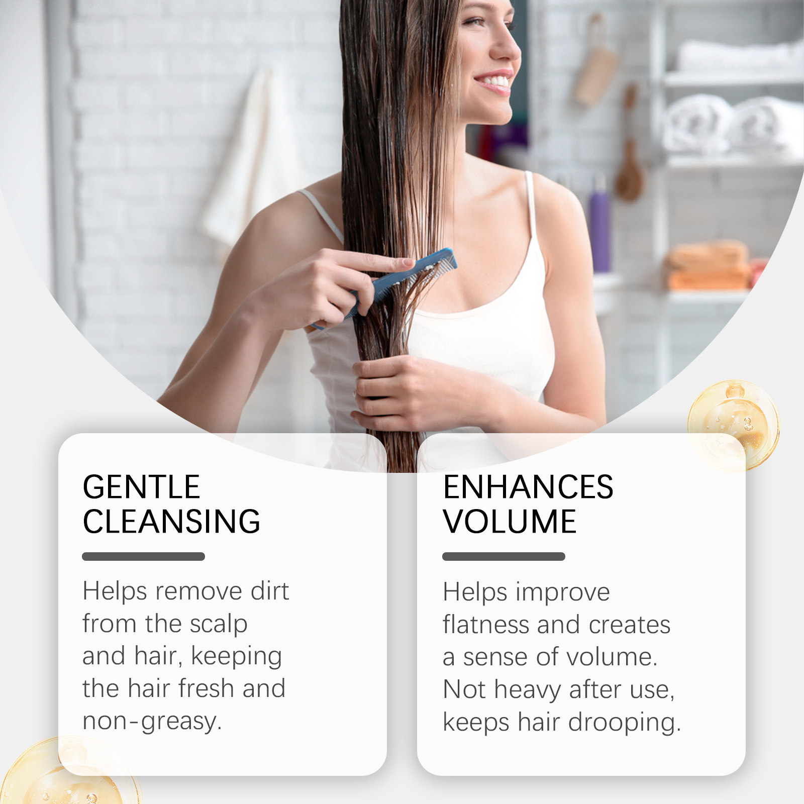 Our shampoo contains sodium lauryl sulfate, cocamidopropyl betaine. It can help remove dirt from the scalp and hair, keeping hair fresh and not greasy. Helps to improve hair flatness and create a sense of volume. Not heavy after use, keep hair down. Its use is simple: thoroughly wet your scalp and hair with warm water. Apply appropriate amount of this product to your hands and lather, then apply the lather to your scalp and hair and massage for 3-5 minutes, rinsing with warm water. It also nourishes hair, reduces blistering, makes hair smoother and more manageable, improves hair dryness, and keeps hair healthy and shiny.