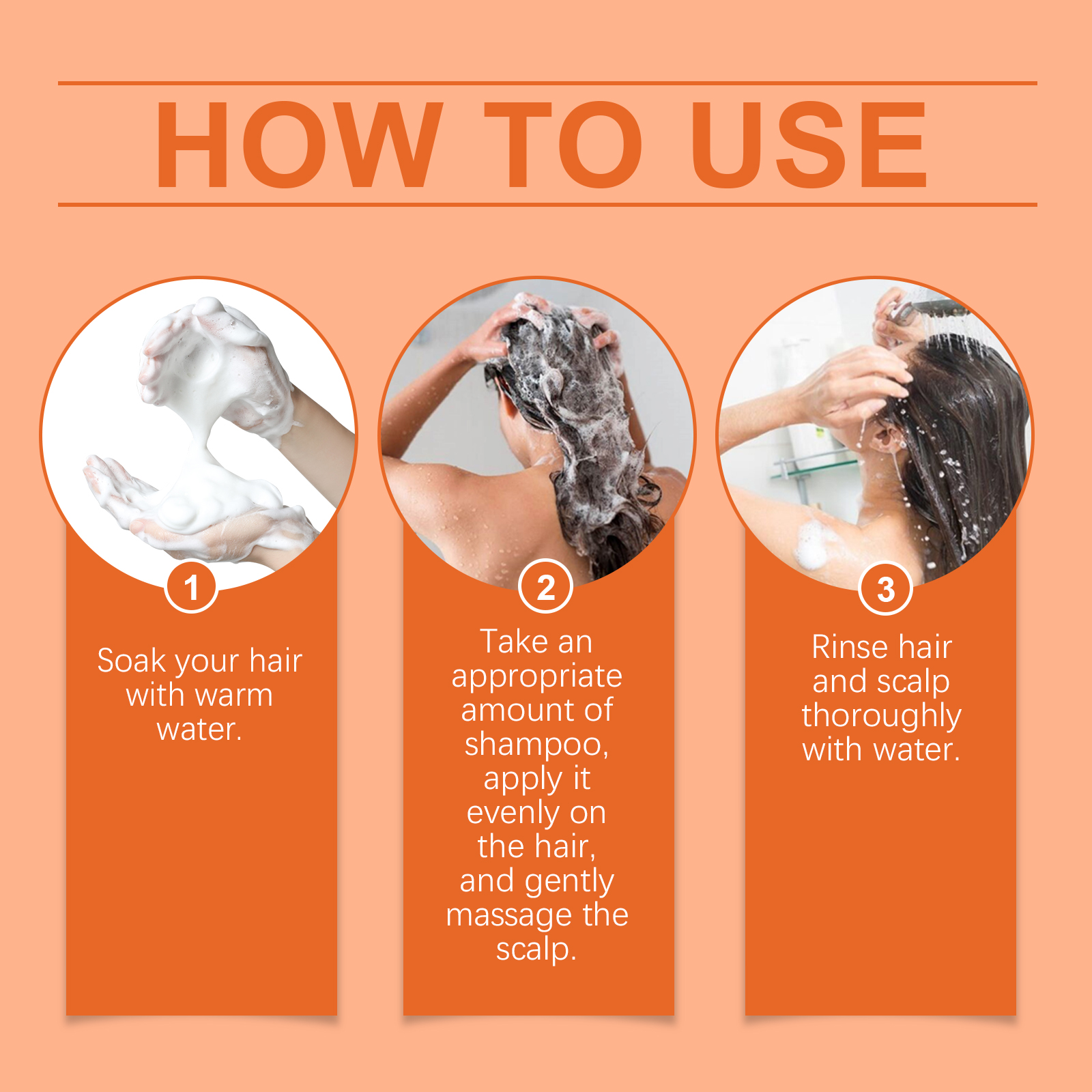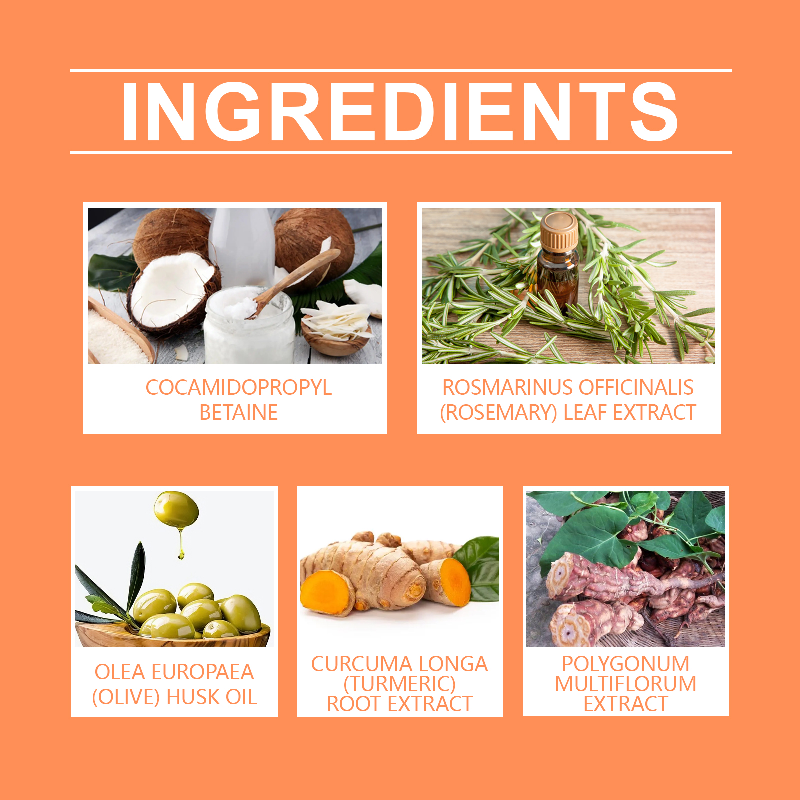 Our turmeric shampoo contains rosemary leaf extract, cocamidopropyl betaine. It can improve the scalp environment and reduce dandruff problems. Its use is simple: Soak your hair in warm water. Take a proper amount of shampoo, evenly apply it to the hair, and gently massage the scalp. Rinse your hair and scalp thoroughly with water. And can provide a full range of scalp care to promote hair growth and prevent hair loss.