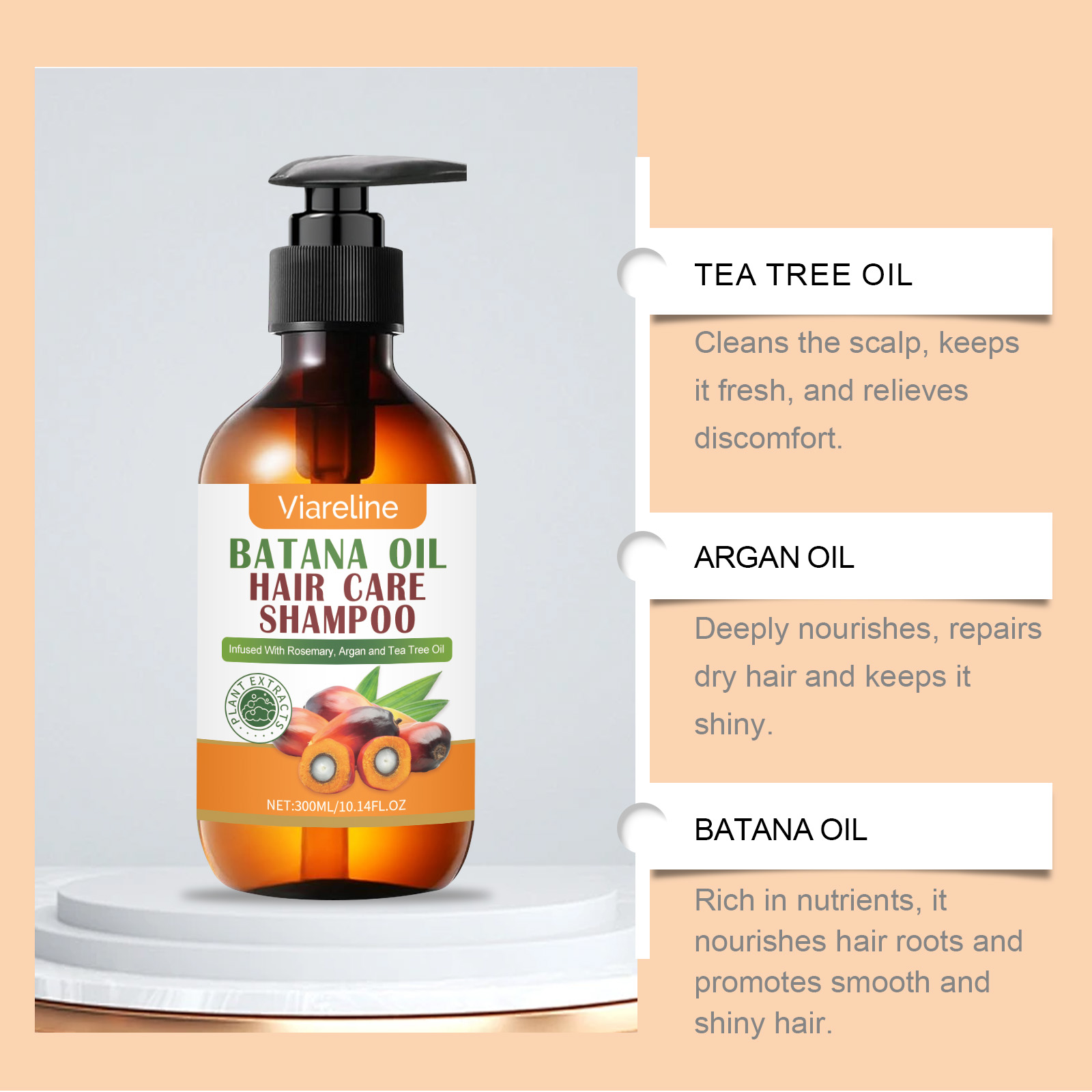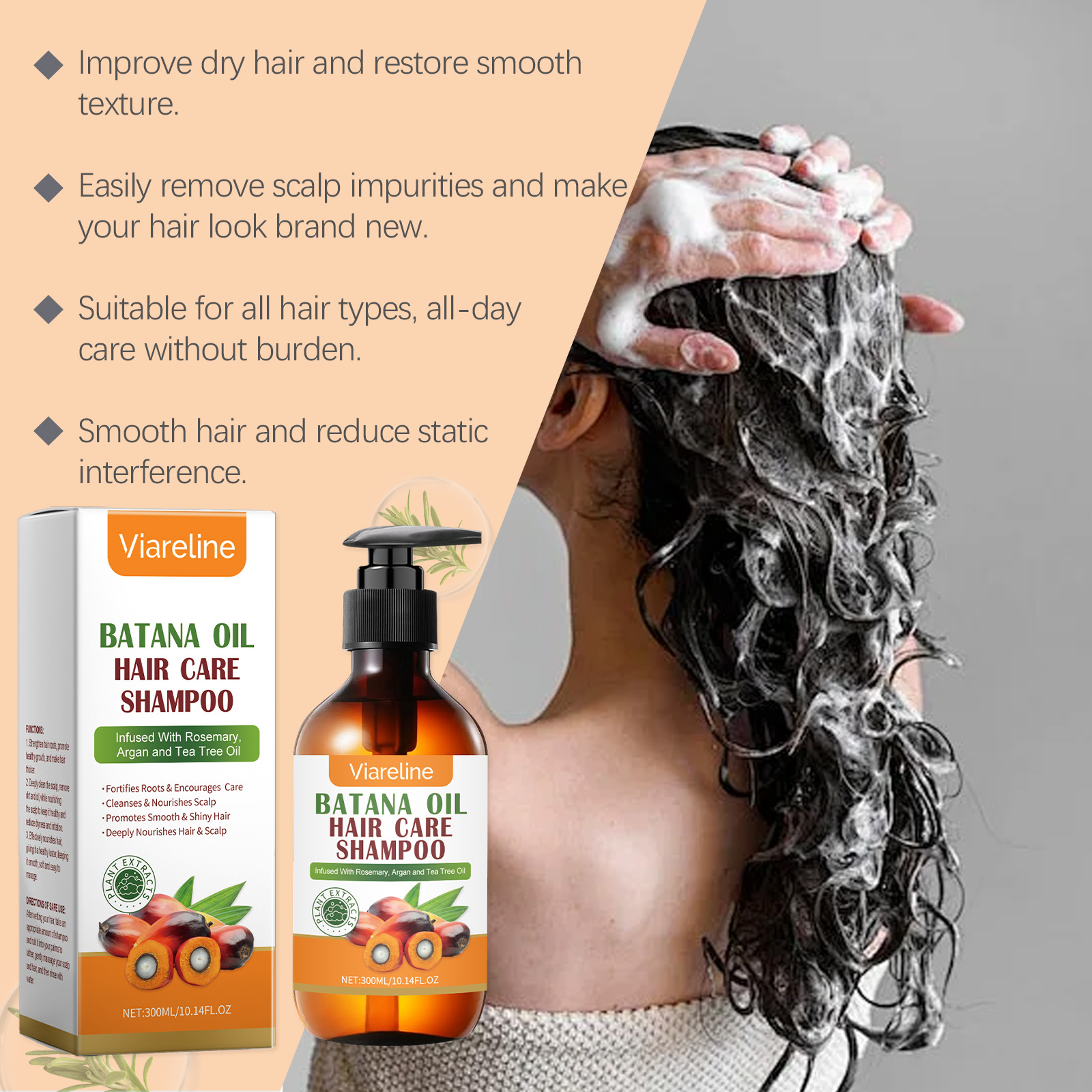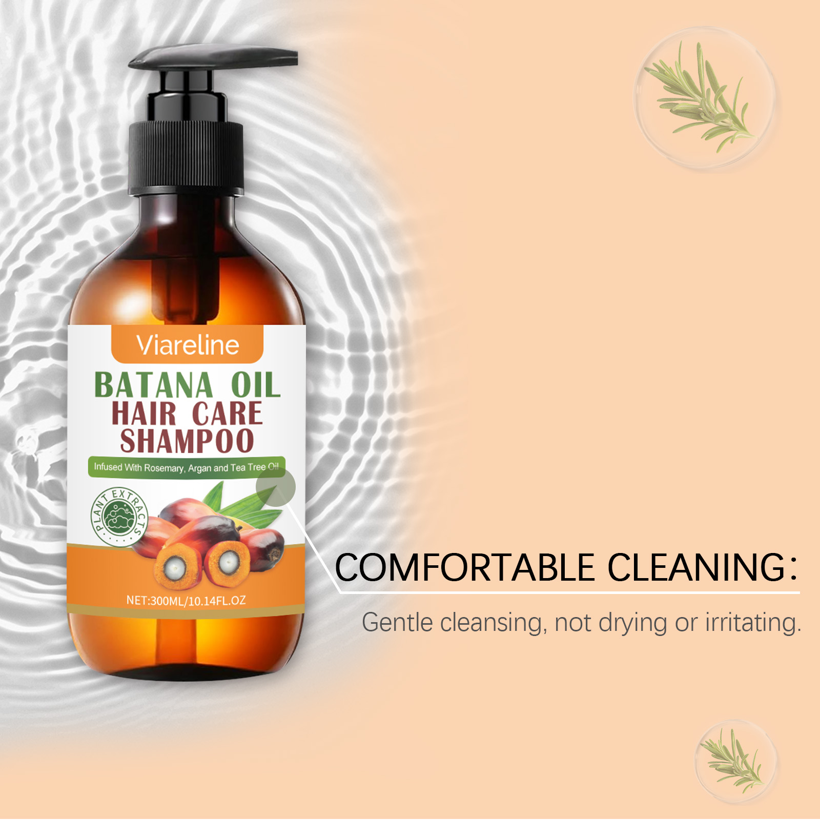 Our Batana oil shampoo contains sodium laureth sulfate and hydroxyethyl cellulose. It can make hair softer and say goodbye to dryness. Complete care to restore natural shine. Its use method is very simple: after wetting the hair, take an appropriate amount of shampoo and rub it into the palm of the hand to foam, gently massage the scalp and hair, and then rinse with water. And keep your hair smooth and natural.