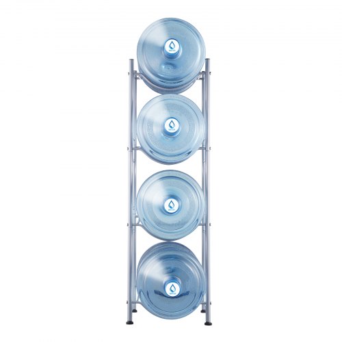 VEVOR 4 Tiers Water Jug Holder Single Row Water Bottle Rack for 4 Bottles Silver, Heavy Duty Water Dispenser Rack with 4 Slots for Gallon Jugs, Detachable Water Storage Shelf Organizer for Home Living Room OfficeWater Bottle RackMulti-Tier StorageEasy InstallationThoughtful DetailsVersatile UseVariety of SizesPrimary Material: Iron,Number of Rows: Single Row,Capacity: 4 Bottles,Number of Tiers: 4 Tiers,Color: Silver,Product Model: 4 Water Bottle Rack-S,Product Dimensions: 13.1 × 13.0 × 41.2 in / 332 × 330 × 1047 mm,Net Weight: 6.66 lbs / 3.02 kg,Overall Load Capacity: 167.6 lbs / 76 kg