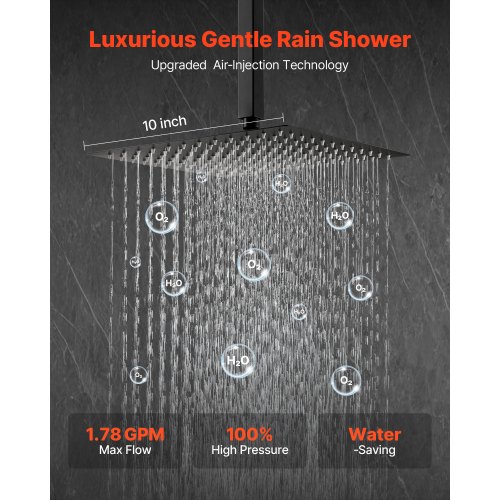 Shower Faucet Set 10" Square Rain Shower Head and Hand Set Matte Black59"/1.5m Stainless Steel HoseStainless Steel Shower ArmAdjustable Handheld Shower HolderDurable Metal ConstructionConvenient Design for Easy UseEasy to CleanInstallation: Ceiling-Mounted,Color: Matte Black,Max Flow Rate: 1.78 GPM (6.7 L/min),Shower Arm + Shower Head Size: 9.72 x 9.72 x 10.63 in/247 x 247 x 270 mm,Thread Type: NPT 1/2 Inch,Shower Head Shape: Square,Shower Arm Length: 7.87 in/200 mm (Without Threads),Panel Size: 7.28 x 5.51 in/185 x 140 mm,Hose Length: 59 in/1500 mm,Shower Head Size: 10 in/254 mm,Item Model Number: DF10-111N,Product Weight: 7.05 lbs/3.2 kg,Handheld Shower Length: 7.87 in/200 mm