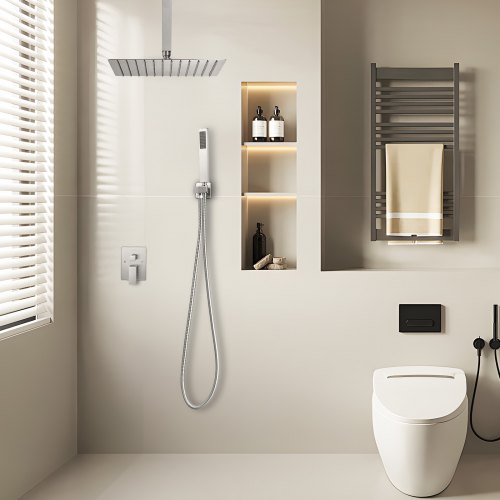 Shower Faucet Set 12" Square Rain Shower Head and Hand Set Brushed Nickel71"/1.8m Stainless Steel HoseStainless Steel Shower ArmAdjustable Handheld Shower HolderDurable Metal ConstructionConvenient Design for Easy UseEasy to CleanInstallation: Ceiling-Mounted,Color: Brushed Nickel,Max Flow Rate: 1.78 GPM (6.7 L/min),Shower Arm + Shower Head Size: 11.81 x 11.81 x 14.76 in/300 x 300 x 375 mm,Thread Type: NPT 1/2 Inch,Shower Head Shape: Square,Shower Arm Length: 12 in/305 mm (Without Threads),Panel Size: 7.28 x 5.51 in/185 x 140 mm,Hose Length: 71 in/1803 mm,Shower Head Size: 12 in/305 mm,Item Model Number: DF12-221N,Product Weight: 7.72 lbs/3.5 kg,Handheld Shower Length: 7.87 in/200 mm