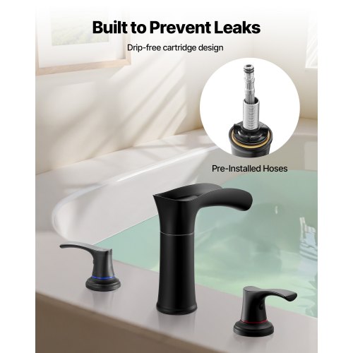 VEVOR Roman Tub Faucet 3 Hole Waterfall Bathtub Faucet Zinc Alloy 2 Handles<br/>Smooth Waterfall Flow<br/>Soft Stream, Cleaner Surroundings<br/>Built for Modern Family Needs<br/>Elegant Finish for Any Décor<br/>Easy Installation, No Hassle<br/>Upgraded Packaging Protection<br/>Color: Matte Black,Item Model Number: F420174-MB,Product Dimensions: 6.30 x 2.24 x 8.86 inch / 160 x 57 x 225 mm,Net Weight: 2.76 lbs / 1.25 kg