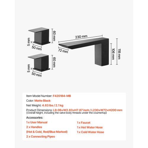 VEVOR Roman Tub Faucet Bath Tubs Faucets Set with 2 Handles Matte Black<br/>High-Efficiency Waterfall Stream<br/>Low-Noise Flow with Anti-Splashing<br/>Designed for Daily Family Living<br/>Designed to Complement Your Space<br/>Easy Installation, No Hassle<br/>Durable Packaging for Transit<br/>Color: Matte Black,Item Model Number: F420184-MB,Product Dimensions: 7.87 x 9.06 x 2.83 inch / 200 x 230 x 72 mm,Net Weight: 5.51 lbs / 2.5 kg