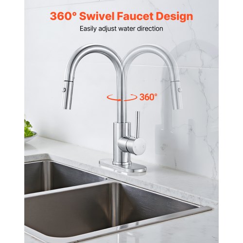 VEVOR Single Handle Sink Faucet Brushed Nickel Pull-Down Kitchen Sink Faucet