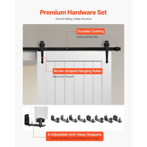 VEVOR Sliding Barn Door with Hardware Kit 36 x 84 inch MDF Panel PVC Surface<br/>Multi-Combination<br/>Alloy Track<br/>Arrow-Shaped Rollers<br/>Premium Hardware<br/>Multiple Room Applications<br/>Track Installation<br/>Net Weight (Including All Accessories): 77.38 lbs / 35.1 kg,Type: H-Shape,Rail Size (Two Sections): 6.6 ft / 201.2 cm,Color: White,Item Model Number: 36HM,Door Frame Thickness: 1-3/8" (35 mm),Surface Treatment: Waterproof PVC Coating,Maximum Product Dimensions (L x W x H): 78.94 x 89.17 x 4.72 inch / 2005 x 2265 x 120 mm,Material: MDF and Pine,Door Size (Width x Height): 36 x 84 inch / 914 x 2134 mm,Middle Panel Thickness: 15/32" (12 mm)