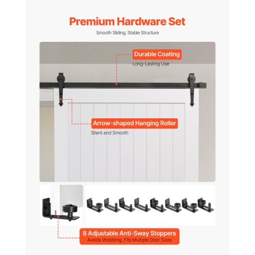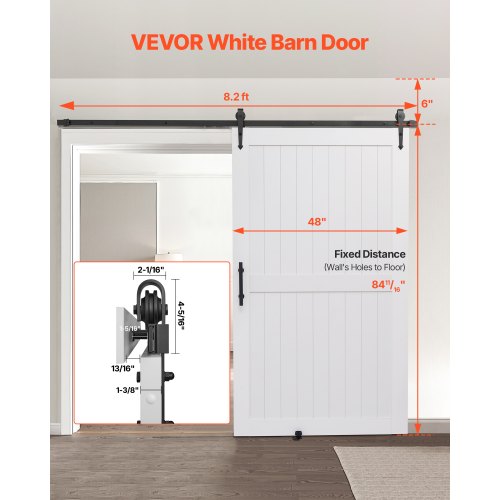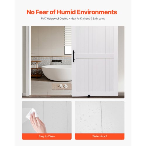 VEVOR Sliding Barn Door with Hardware Kit 48 x 84 inch MDF Panel PVC Surface<br/>Multi-Combination<br/>Alloy Track<br/>Arrow-Shaped Rollers<br/>Premium Hardware<br/>Multiple Room Applications<br/>Track Installation<br/>Net Weight (Including All Accessories): 94.14 lbs / 42.7 kg,Type: H-Shape,Rail Size (Two Sections): 8.2 ft / 249.9 cm,Color: White,Item Model Number: 48HM,Door Frame Thickness: 1-3/8" (35 mm),Surface Treatment: Waterproof PVC Coating,Maximum Product Dimensions (L x W x H): 98.43 x 89.17 x 4.72 inch / 2500 x 2265 x 120 mm,Material: MDF and Pine,Door Size (Width x Height): 48 x 84 inch / 1219 x 2134 mm,Middle Panel Thickness: 15/32" (12 mm)
