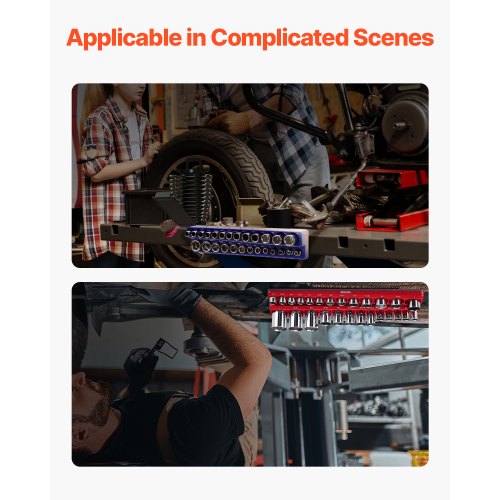 Magnetic Socket Organizer Set 6PCS Socket Trays Blue & Red for Metric SAEProfessional and Convenient StorageStrong Magnetic BaseStrudy and DurableThoughtful DetailsWide ApplicationCost Efficiency14.96'' × 3.50'' × 1.53'' / 380 x 89 x 39 mm (3/8″ Sizes):,9.44'' × 2.16'' × 1.43'' / 240 x 55 x 36.5 mm (1/4″ Sizes):,Materials: ABS, Rubber Magnet,Color: Blue for Metric, Red for SAE,Item Model Number: QJ7333-6pc,Quantity: 6 pcs, Metric & SAE,14.96'' × 3.50'' × 1.25'' / 380 x 89 x 32 mm (1/2″ Sizes):,Product Dimensions:,Net Weight: 8.31 lbs / 3.77 kg