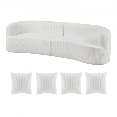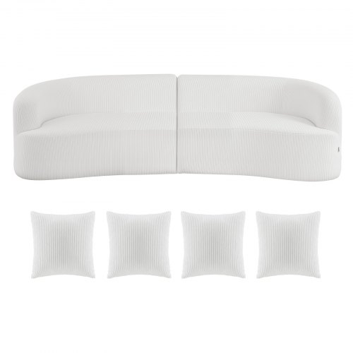 VEVOR 112 in Curved Modular Sofa Modern Luxury Sectional Couch with 4 Pillows<br/>111.8 in Fabric Sofa<br/>Extra-Deep Seating<br/>Ergonomic Fit<br/>No Assembly<br/>Versatile & Stylish<br/>Easy to Clean & Maintain<br/>Seat Depth: 25 in / 635 mm,Color: White,Item Model Number: 8022,Seat Height: 18 in / 457 mm,Material: Corduroy, Foam, Spring Steel,Product Dimensions: 40.16 x 111.8 x 30.7 in / 1020 x 2840 x 780 mm,Net Weight: 98.11 lbs / 44.5 kg