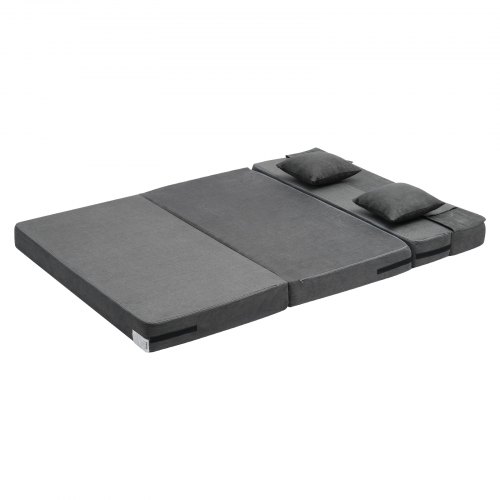 VEVOR Folding Sofa Bed, 3-in-1 Foldable Couch Bed with 2 Pillows and Washable Cover, 25D High Density Memory Foam Convertible Sleeper Chair Bed, Futon Couch for Living Room, Bedroom, Dark Grey(Queen)High-Density Support FoamSoft FabricErgonomic DesignEasy TransformationMultifunctional & PracticalSpace-Saving DesignMax Load: 440.92 lbs / 200 kg,Item Model Number: ZDSFD-3,Product Weight: 35.8 lbs / 16.25 kg,Throw Pillows: 2 Pieces,Expanded Dimensions: 81.1 x 60.83 x 5.91 inch / 2060 x 1545 x 150 mm,Product Dimensions: 81.1 x 60.83 x 5.91 inch / 2060 x 1545 x 150 mm