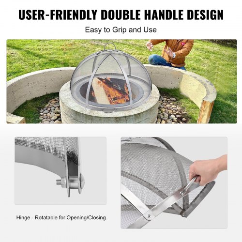 VEVOR Firepit Spark Screen Lid, 30" Diameter, Outdoor Firepit Ring Cover Round Accessories, Fire Pit Metal Cover, Easy-Opening Stainless Steel Fire Ring Covers for Outdoor Patio Fire Pits BackyardStainless Steel Fire Pit LidUser-Friendly Mesh DesignConvenient HandlesEasy Installation of the Fire Pit CoverShare Beautiful MomentsHigh AdaptabilityInterior Dimensions: φ27.8 x 13.8 inch / φ705 x 350 mm,Item Model Number: YCSR-10001-30,Material: Stainless Steel,Mesh Wire Diameter: φ0.03 inch / φ0.8 mm,Mesh Hole Diameter: φ0.08 inch / φ2 mm,Fire Poker Length: 19.7 inch / 500 mm,Structure: 6-Piece Assembled,Product Dimensions: φ30.3 x 17 inch / φ770 x 430 mm,Diameters: 30 inch / 762 mm,Net Weight: 13.8 lb / 6.24 kg