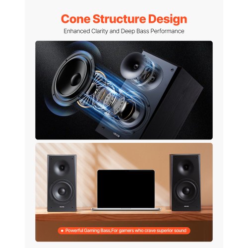 Passive Bookshelf Home Speakers Pair of Stereo Audio Speakers Cone 55Hz-20KHz4-Inch Passive Bookshelf Speaker300W Room-Filling SoundEfficient TransmissionPremium MDF Wooden EnclosureStylish for Any SpaceComplete AccessoriesTweeter Size: 1 in/25.4 mm,Voltage/Frequency: AC 120-240V, 50/60Hz,Audio Output Mode: Stereo,Type: Passive,Color: Black,Item Model Number: VV-6B,Woofer Size: 6.5 in/165.1 mm,Frequency Response: 55Hz-20KHz,Impedance: 8 Ω,Product Dimensions: 7.83 x 11.81 x 15.35 in/199 x 300 x 390 mm,Net Weight: 22.25 lbs/11.0 kg,Power Output: 100W