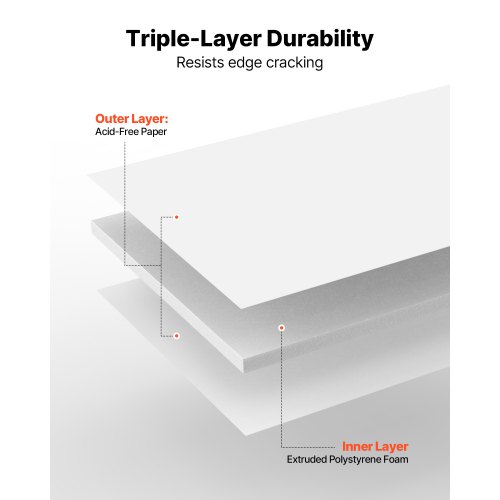 VEVOR Foam Board White Foam Core Boards 3/16 Inch Thick 24 x 36 Inch 12 Pack<br/>Versatile Use<br/>Color Protection & Seep-Proof<br/>Acid-Free & Aging-Resistant<br/>Durable & High Density<br/>Larger, Wider & Thicker<br/>12-Piece Set<br/>Color: White,Item Model Number: PMB910610,Material: Extruded Polystyrene Foam + Double-Sided Coated Paper (60 g),Product Dimensions: 36 x 24 x 3/16 in/910 x 610 x 5 mm (12 pcs),Net Weight: 4.85 lbs/2.2 kg