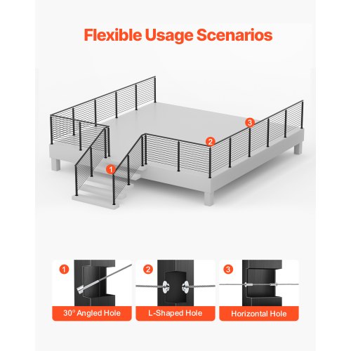 VEVOR Cable Railing Post, 42x2x2 Inch Level Deck Stair Posts, 1-Pack Stainless Steel Cable Handrail Post, Pre-Drilled Pickets with Mounting Bracket Stair Railing Kit, Black, 1JZLGZXHS106AWJO6001V0Horizontal Hole Railing Post4 Thoughtful HighlightsEasy to InstallFlat and Curved SupportsMulti-Scene ProtectionBuilding Code-Compliant SpacingThickness: 0.06"/1.5 mm,Connect Methods: Concrete/Wood,Item Size: 42 x 1.97 x 1.97"/106.7 x 5 x 5 cm,Base Size: 5 x 3.46 x 0.61"/127 x 88 x 15.5 mm,Holes Distance: 3.15"/80 mm,Color: Black,Item Model Number: VV-106.7x5x5-LGZYK,Material: Stainless Steel+Powder Coated,Hole Diameter: 4.13"/105 mm,Item Weight: 2.5 kg/5.5 lbs
