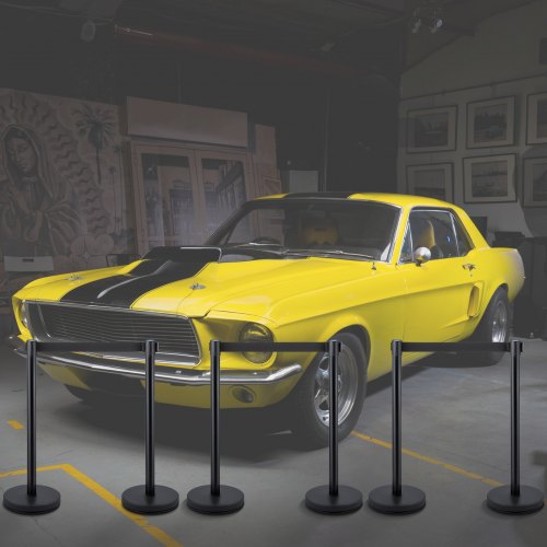 VEVOR Crowd Control Stanchions, 6-Pack Solid Base Crowd Control Barriers with 3PCS 6.6FT Black Retractable Belts, Black Stanchion Queue Post, Belt Barriers Line Divider Stanchion SetSteel & Iron MaterialRetractable Belt4-Way ConnectionSteady BaseEasy to AssembleWidely UsedOverall Height: (Approx.) 35.4 in / 90 cm,Pole Thickness: 0.03 in / 0.8 mm,Base Diameter: 12.6 in / 32 cm,Number: 6 Pcs,Model: Stanchions 6Pcs,Belt Length: 6.6 ft / 2 m,Main Material: Stainless Steel,Belt Color: Black,Item Weight: 81 lbs / 37 kg