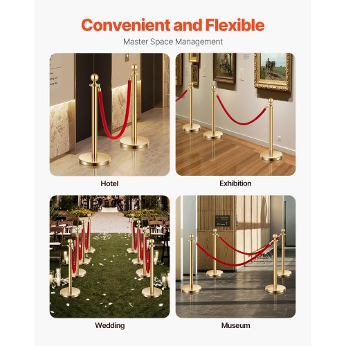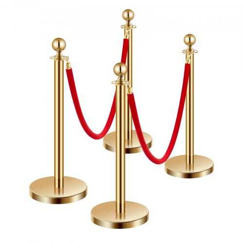 VEVOR Stanchions and Velvet Ropes 4Pcs, Hollow Base with Stainless Steel Post, 2 Red Velvet Ropes and Posts, Crowd Control Barriers Gold Stanchions, Red Carpet Runner Poles for Party SuppliesElegant & DurableSturdy BaseFlexible & ConvenientEasy AssemblyWide CoverageFour-Way ConnectorsUsage Type: Fillable,Single Base Weight Before Filling: 0.50 lbs / 0.225 kg,Single Base Weight After Filling with Sand: 7.72 lbs / 3.5 kg,Item Model Number: TJDYQ320PDTC4-2,Product Weight: 11.46 lbs / 5.20 kg,Flannel Rope Diameter: 1.26 inches / 32 mm,Product Dimensions: φ12.91 x 35.04 inches / 320 x 890 mm,Flannel Rope Length: 4.92 ft / 1.5 m