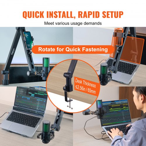 VEVOR Microphone Boom Arm with Desk Mount, 360° Rotatable, Adjustable Mic Stand with 3/8" to 5/8" Adapter Port, for Recording Blue Yeti Hyperx Quadcast Blue Snowball Shure SM7B Audio TechnicaHigh-Quality Microphone StandStrong Load BearingHidden Cable ManagementUser-Friendly FeaturesUsage GuidelinesPremium Quality ConstructionFixed Clip Range: ≤ 2.55 in / 65 mm,Max Stretch Length: 32. 25 in / 94 cm,Max Load Bearing: 3.31 lbs / 1.5 kg,Product Expanded Dimensions: 40.16 x 3.14 x 2.16 in / 1020 x 80 x 55 mm,Adapt Port: 3/8'' to 5/8'',Item Model Number: AK-V6,Net Weight: 2.57 lbs / 1.17 kg,Adjustable Angles: 360° Rotation,Main Material: Aluminum Alloy + ABS