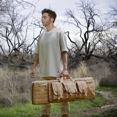 VEVOR Tactical Range Bag, 36 inch Tactical Double Firearm Bag, Soft Outdoor Tactical Case with Lockable Zipper, Portable Handle & Shoulder Strap, 3 Large Storage Pockets Tactical Range Case, BrownUltimate Protection for 2 RiflesCustomize & SafeguardPerfect Storage Solution2 Ways to CarryBuilt to LastMultiple ScenariosRifle Capacity: 2 Rifles and 2 Pistols,Fixing Method: Adhesive Tape,Waterproof: Daily Waterproof,Color: Brown,Item Model Number: GN9013-BR36,Length 36 in: Fits gun up to 34 in,Material: 600D Polyester,Features: Molle System, Lockable Zipper,Foldable: Non-folding,Weight: 6.64 lbs/3.01kg,Product Size: 38.4x12.4x3 in/975x315x75 mm