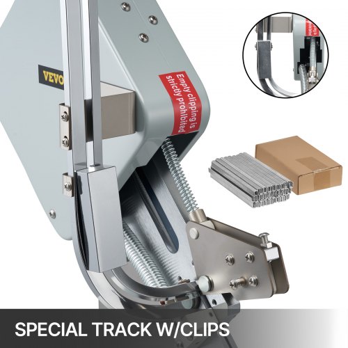 VEVOR U-shape Sausage Clipper Clipping Machine, Manual Sausage Clipper, Portable Clipping Machine with 8000PCS U-shape Clips, for Supermarkets Bakeries Cafe ShopsChrome-plated SteelExcellent ClippingManual OperationSpecial Track w/ ClipsSolid & Thickened BaseVarious ApplicationMachine Weight: 13 kg/28.7 lbs,Machine Type: SU-50,Buckle Quantity: 5000pcs (more or less),Machine Material: Steel,Buckle Capacity: 200pcs (more or less),Machine Size: 37 x 19 x 57 cm/14.6 x 7.5 x 22.4 in,Diameter of Film: 50-240 mm/2-9.4 in(depends on the thickness of the film),Buckle Size: 11.5 x 11.5 mm/0.45 x 0.45 in,Buckle Model: U506