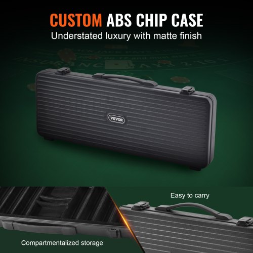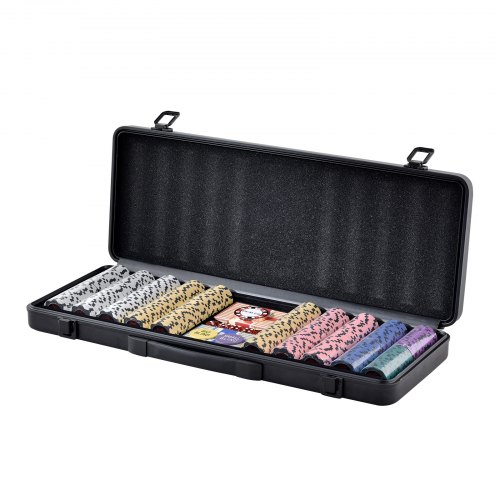 VEVOR Poker Chip Set, 500-Piece Poker Set, Complete Poker Playing Game Set with Carrying Case, Heavyweight 14 Gram Casino Clay Chips, Cards, Buttons and Dices, for Texas Hold'em, Blackjack, GamblingComplete SetHigh-Quality ChipsNeatly OrganizedPremium Chip CaseVersatile UseThe Perfect GiftSpecifications: 500pcs,Chip Dimensions: 40 x 3.3 mm / 1.57 x 0.13 inches,Item Model Number: YC-500-C,Product Weight: 9 kg / 19.8 lbs,Chip Material: CLAY Plastic + Iron,Case Material: ABS
