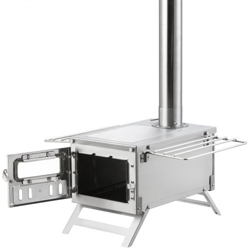 VEVOR Wood Stove, 80 inch, Stainless Steel Camping Tent Stove, Portable Wood Burning Stove with Chimney Pipes & Gloves, 700in³Firebox Hot Tent Stove for Outdoor Cooking and Heating with 8 PipesPortable and Multi-functionalProfessional Outdoor AccessoriesSturdy and Rust-ResistantInstantly Transform into a GrillWide Range of ApplicationsEfficient Heat Conduction PlateFire Box Size: 320 x 205 x 160 mm /12.60" x 8.07" x 6.30"(3267 in ³),Net Weight (Including All Accessories): 5.3 kg /11.68 lbs,Item Model Number: WMCPSF02,Pipe Size: φ 61 x 300 mm /φ 2.4" x 11.8",Product Size (Including Chimney): 353 x 437 x 276 mm /13.90" x 17.20" x 10.87",Material: Stainless Steel,Chamber Size: 320 x 205 x 160 mm /12.60" x 8.07" x 6.30", 49.2L,Wall Thickness: 1 mm /0.04"