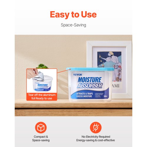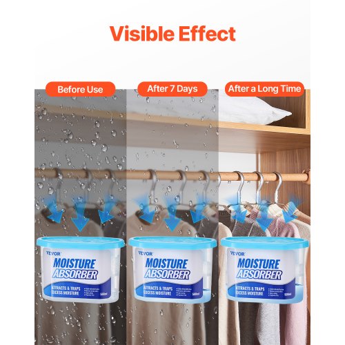 VEVOR Moisture Absorber Boxes, 10.8 oz Humidity Absorber Boxes(6 Packs), Fragrance Free Dehumidifier Attracts Extra Moisture from Your Bathroom, Closet, and KitchenEfficient Moisture AbsorptionVisible EffectPhysical DehumidificationSimple OperationWide ApplicationLong-Lasting DurabilityGross Weight: 10.8 oz / 305 g / Box,Item Model Number: LX-003,Product Weight: 4.12 lbs / 1.87 kg,Style: Disposable,Water Collection Capacity: 500ml,Scent: Fragrance-Free,Product Dimensions (L x W x H): 5.91'' x 3.31'' x 3.94'' / 150 x 84 x 100 mm
