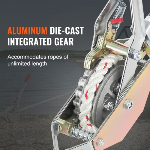 VEVOR Rope Puller, 3/4 Ton (1,653 lbs) Pulling Capacity, with 100' of 0.6" dia. Rope, 2 Hook, Come Along Winch, Heavy Duty Ratchet Power Puller Tool for Moving Boats, Securing Items, Transporting LogsPull Like a ProAll-in-One Gear DesignHold Tight, No SlipsFast and Fuss-Free100 ft Polyester RopeEasy to StoreHandle Length: 16.9 in/42.9 cm,Item Model Number: JX1.3-30,Product Weight: 15 lbs/6.8 kg,Max Load Capacity: 1653 lbs/0.75T,Rope Length: 100 ft/30.48 m,Product Size: 26.2 x 3.1 x 7.9 in/665 x 80 x 200 mm