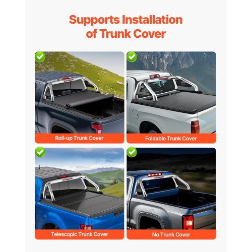 Truck Bed Roll Bar Chase Rack for Full-Size&Mid-Size Pickup Carbon SteelCargo ProtectionEasy to UseNight Driving ProtectionProfessional DesignEasy InstallationSecure TransportSide Mount Width: 57-64 inch / 1448-1626 mm,Item Model Number: RBTY045S2,Item Dimensions: 61.0 x 26.8 x 23.6 inch / 1550 x 680 x 600 mm,Net Weight: 57.3 lbs / 26 kg,Main Material: Carbon Steel + Stainless Steel